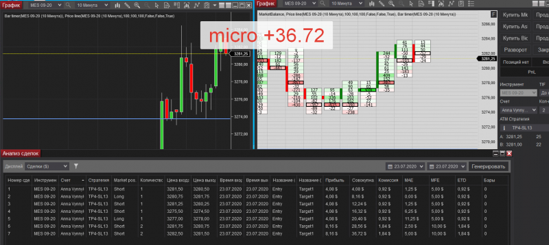 23/07/2020 micro, прибыль +36,72 дол, +10% к депозиту, 7 сделок (первая половина дня до 11.20)
