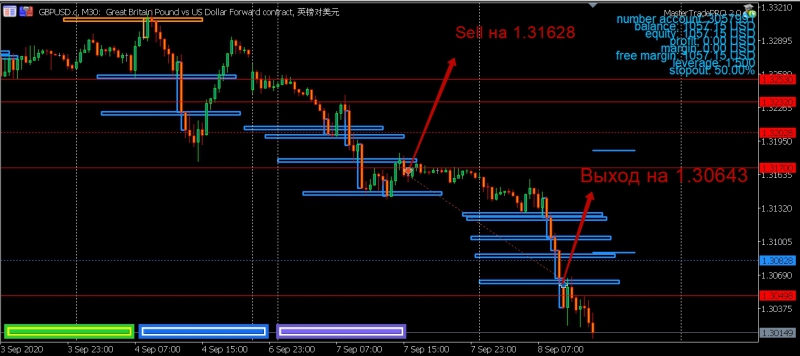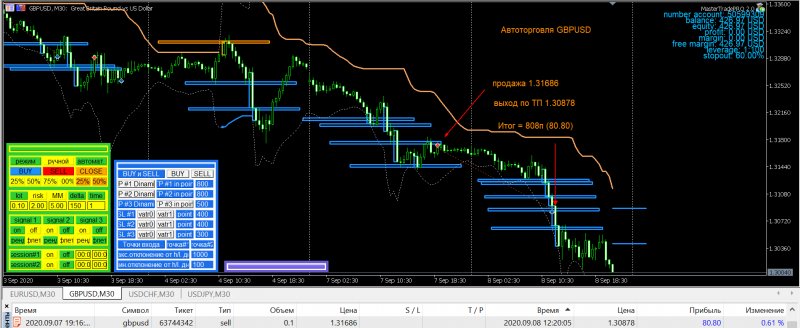 GBP/USD: Вход по тренду на продажу. Не стал долго оставаться в позиции, поскольку ATR уже большой.