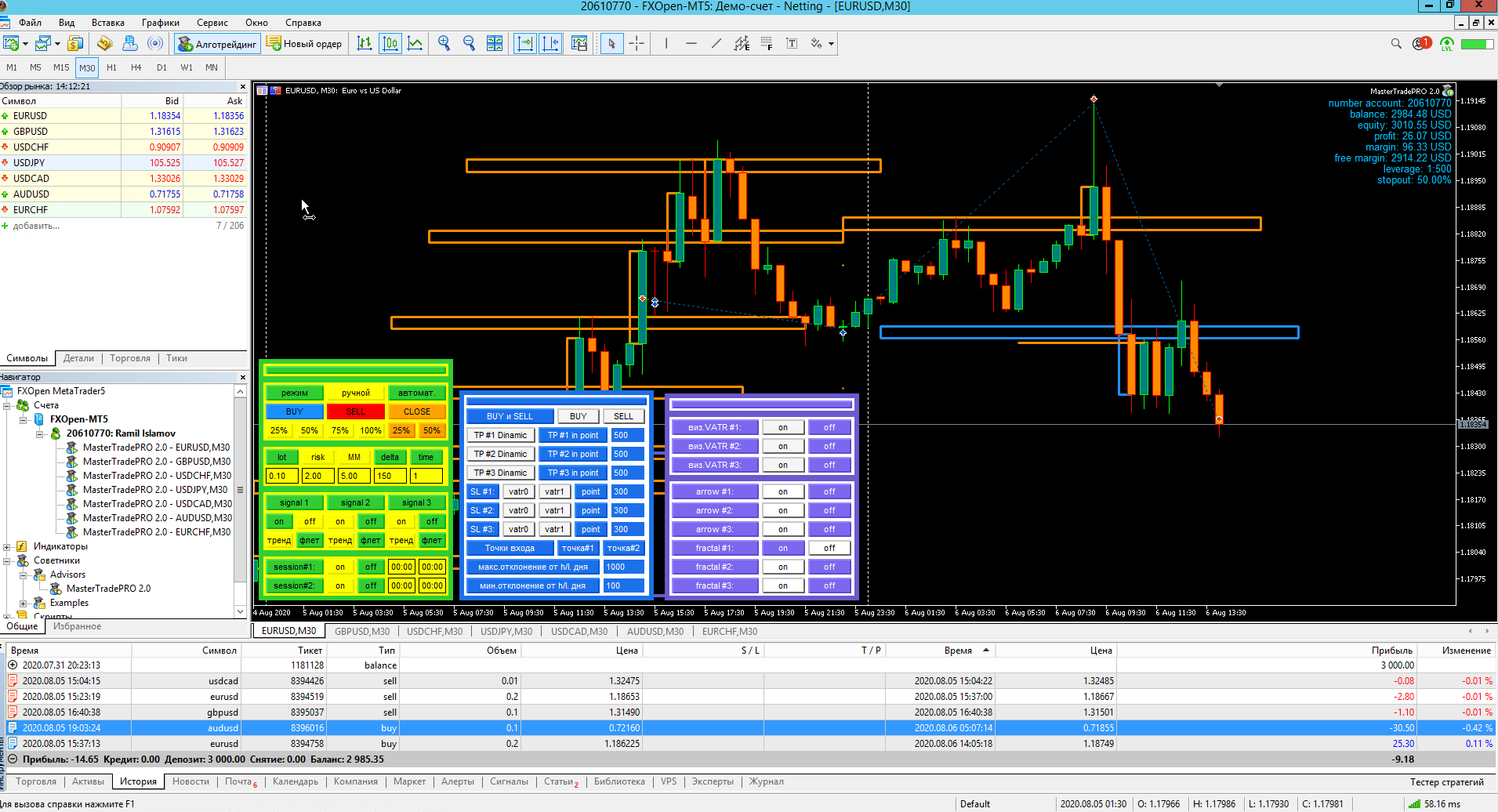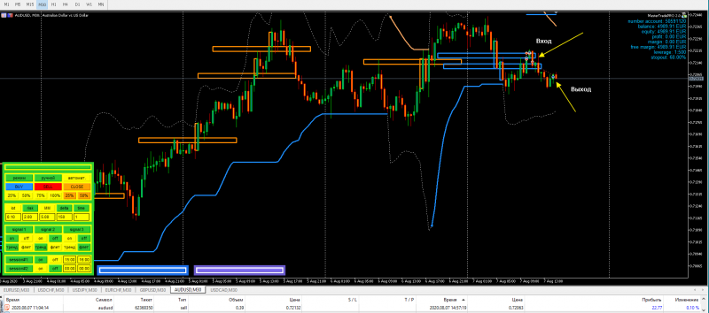 06 август 2020г  Алерт по евро/usd на покупку. Так как автомат с вечера не был выключен, робот сам вошел в сделку. Итог: прибыль +25,3$   ЛОТ 0,1 вход -1,18622  выход- 1,18749