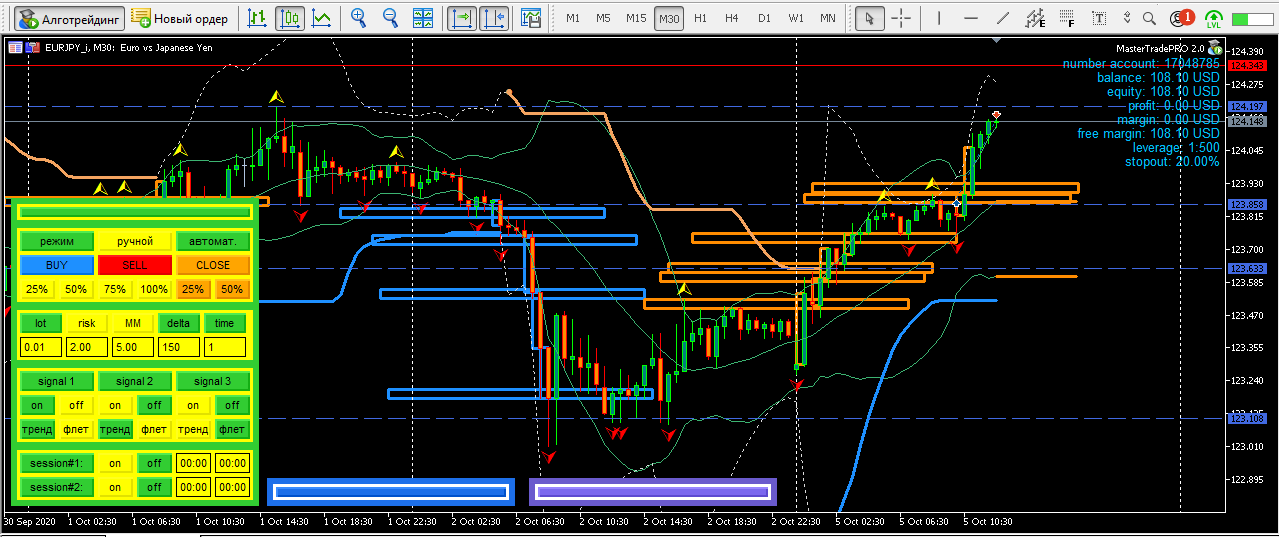 Евро японец вход руками при появлении сигнала на покупку, выход руками у 4х часового уровня