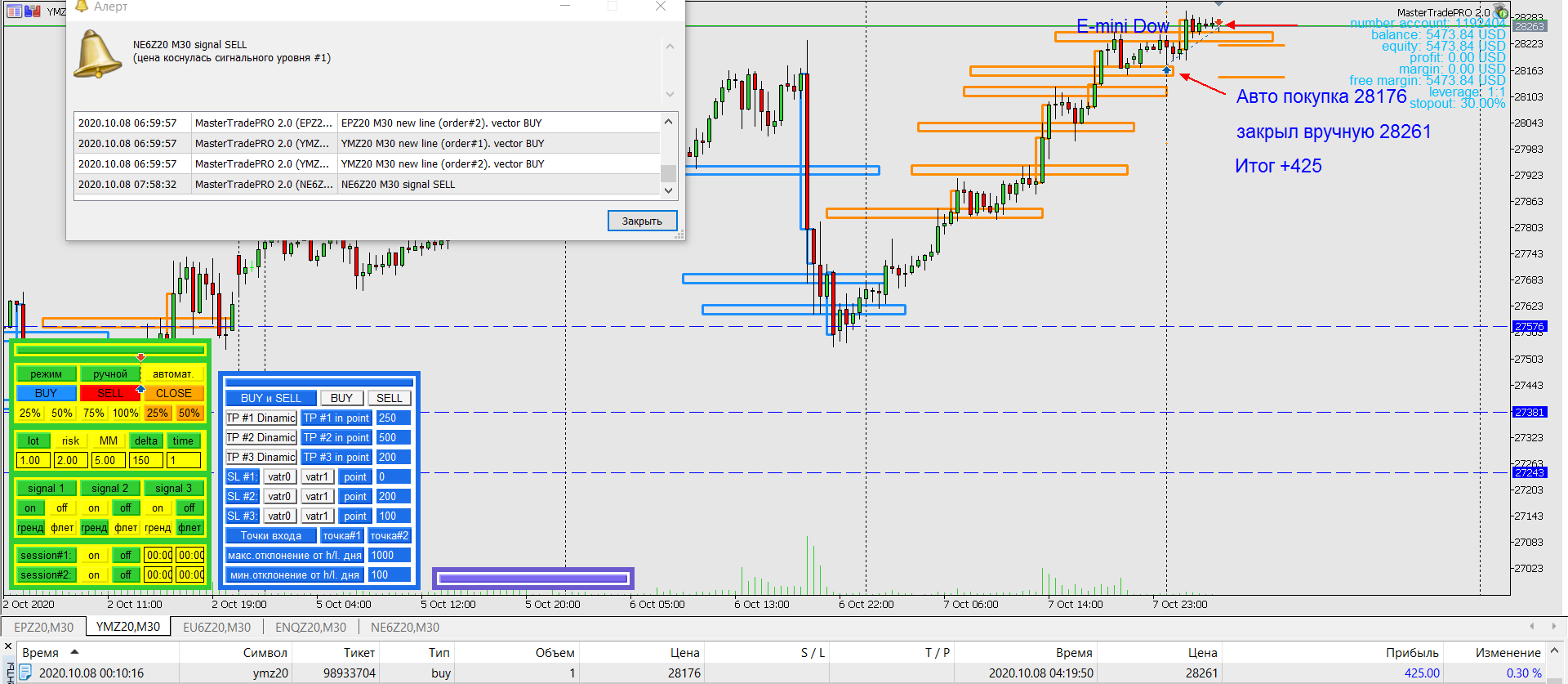 - Итог сделки (плюс или минус и сколько)