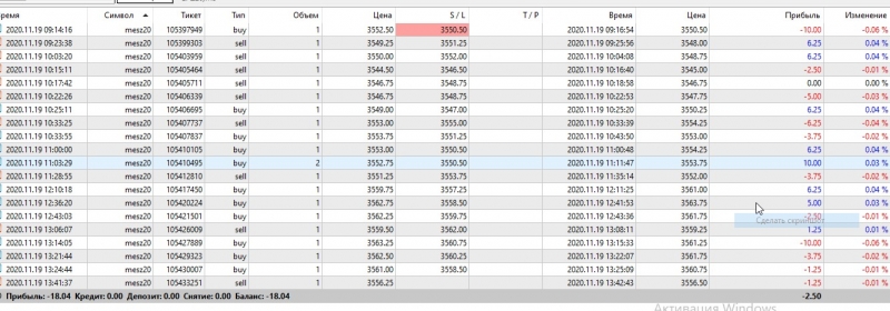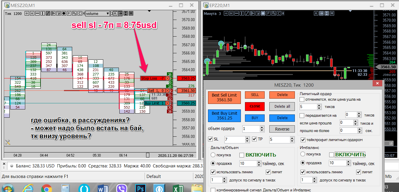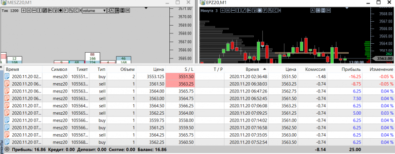 20\11\2020 . Утро Азия. 1 сделка сходу со стопом, вторая - случайная, как-то 2 ордера открыла нечаянно. и снова минус. Потом посмотрела