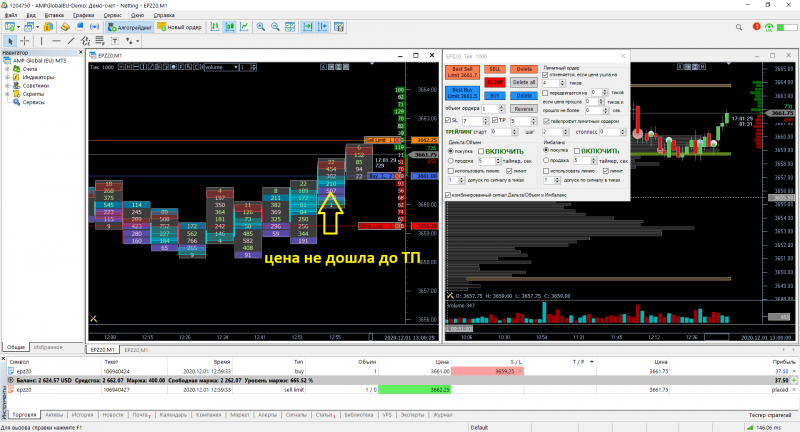 Здравствуйте, Олег. Попробуйте ставить красную линию(для примера из видео) ниже всего текущего графика и просто переставлять ее по мере приближения цены к ней. Еще в панельке там где ставится количество тиков для отмены лимитного ордера поставьте цифру побольше, чтобы ордер всегда срабатывал сразу при появлении сигнала.