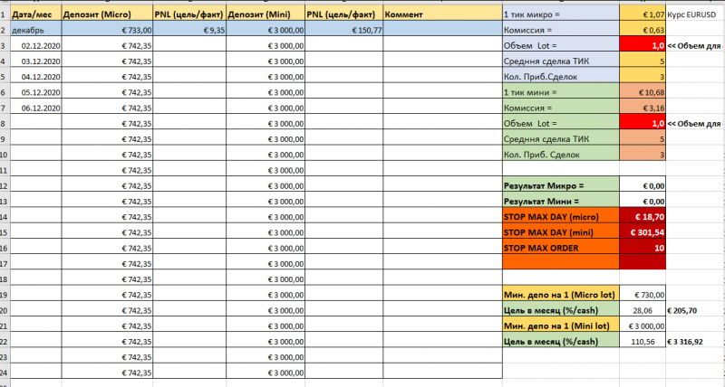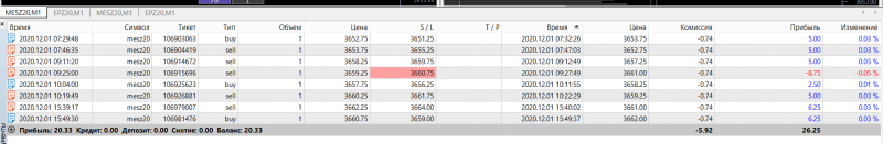 с 01/12/2020 демо, микро. Начала вести дневник. Убрала спешку (почти). План выполнен за 8 сделок - по 4 тика, кроме 2-х последних- они по 5 - тк Америка