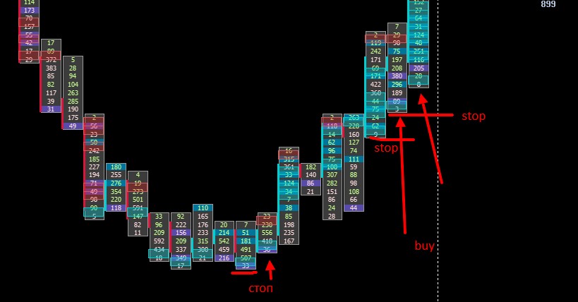 Очень часто вижу скриншоты сделок, входы которых осуществляются на конце свечки и установкой стопа посередине этой свечи) На мой взгляд это опасно так как все мы знаем про эти откаты после пробоя хая каких-то свечей,поэтому лучше как говорит Евгений, входить при наличия монолита и внизу свечки)) Что касается стопа,то на мой взгляд разумнее будет устанавливать его не посередине свечи,а за свечей с предыдущим сигналом ,за последний дельта обьем или имбаланс,так у вас есть хоть какая-то защита разумная,там есть сигнал и возможно при откате цена не зацепит ваш стоп ))А если при этом ваш стоп возрастает то значит разумнее будет искать те сделки по монолиту при которых ваш стоп будет 8 тиков,но стоп этот будет за предыдущим сигналом и хоть как-то защищен )