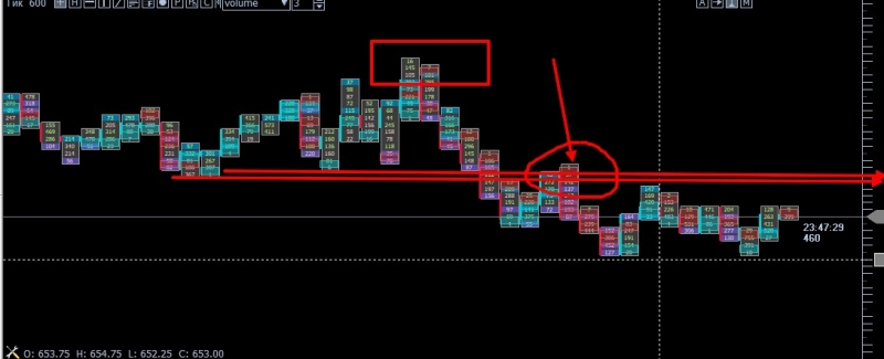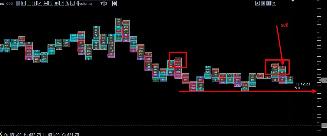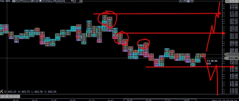 Вошел в продажи и стоп  за  цену 657, минимальные имбалансы