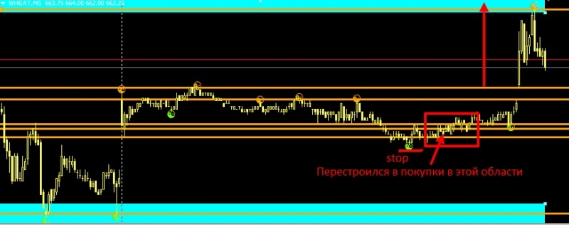 А вот пшеница не  смогла  удержаться на уровне 665.30,после чего второй вариант отработал, цена  пробила и протестировала область  с последующим движением)