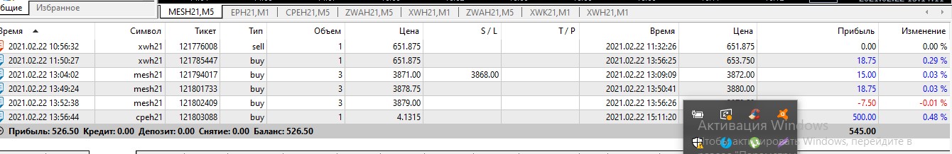 И собственно пару сделок которые успел сделать ) Пришлось закрыть пшеницу в пользу меди так как не хватало маржи)