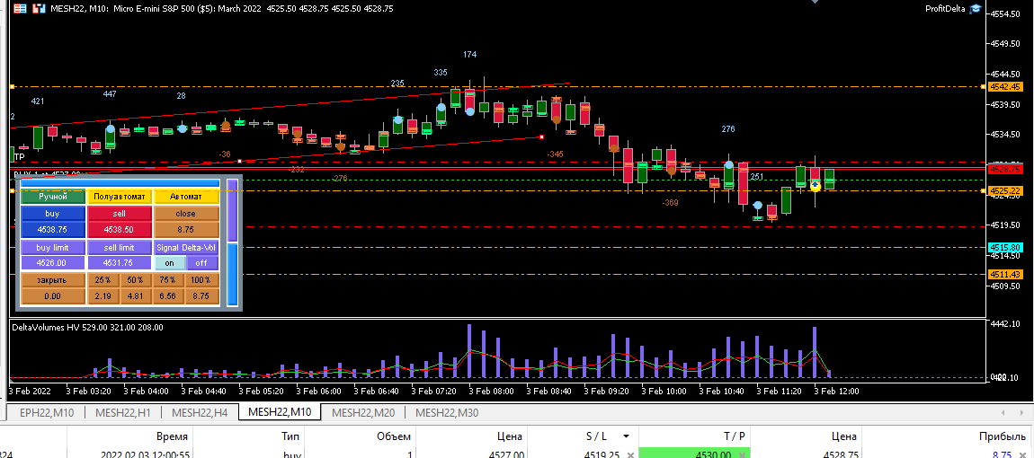 Входил по стратегии от ТТ -455. Цены начали подталкивать вверх.