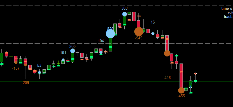 вход по сигналу "накопление отрицательного объёма", на красной свече аномальный объём, перекос - толкнул цену в тп +25