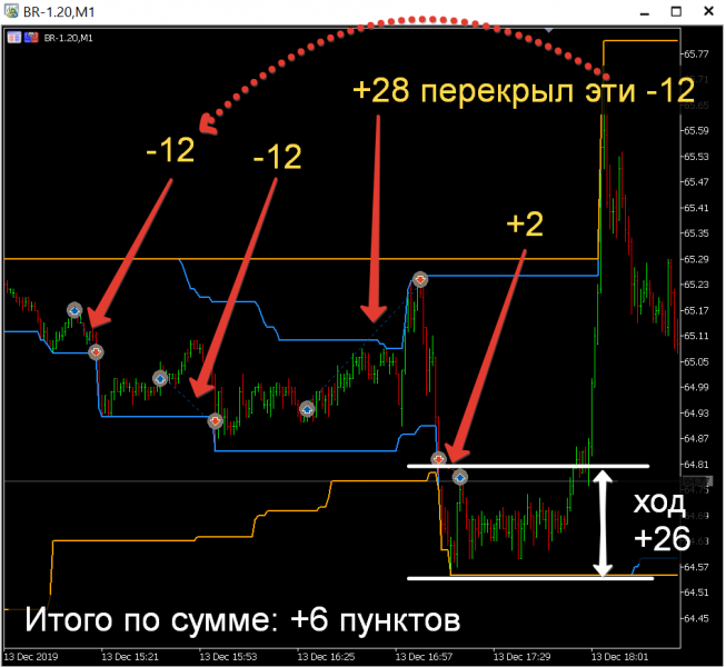 - Сделка 1: остопился с убытком -12 пунктов.