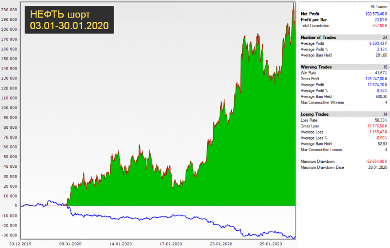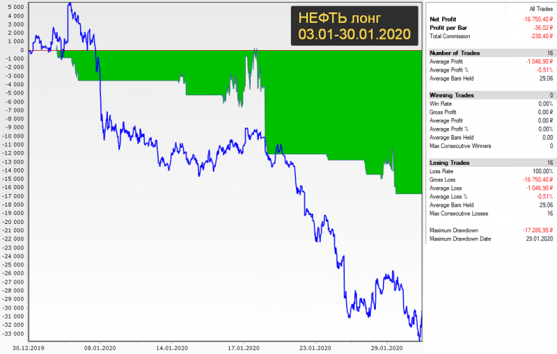 Нефть стабильно падала весь январь, поэтому лонг стабильно давал убыток, а шорт - прибыль. Январь - идеальный трендовый месяц по нефти.